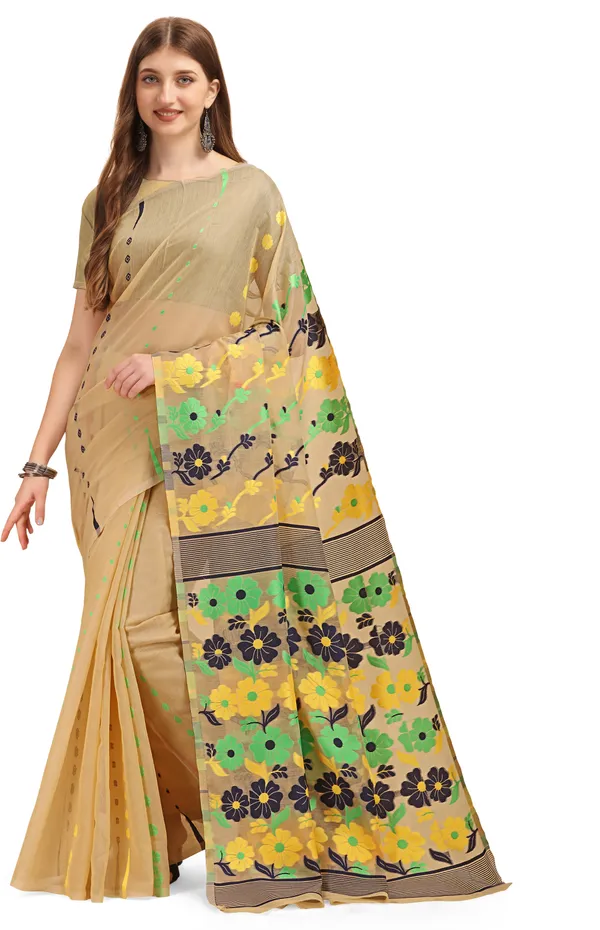Beige Cotton Woven Soft Silk Dhakai Jamdani Saree