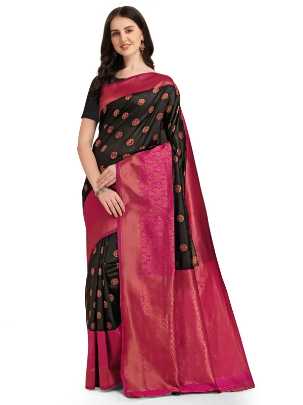 Black Banarasi Kanjivaram Woven Cotton Silk Saree