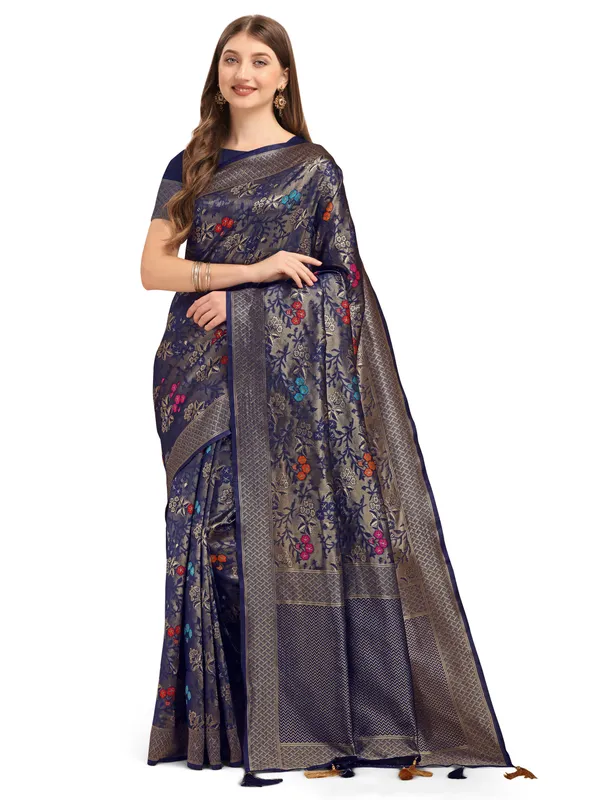 Blue Banarasi Kanjivaram Woven Cotton Silk Saree