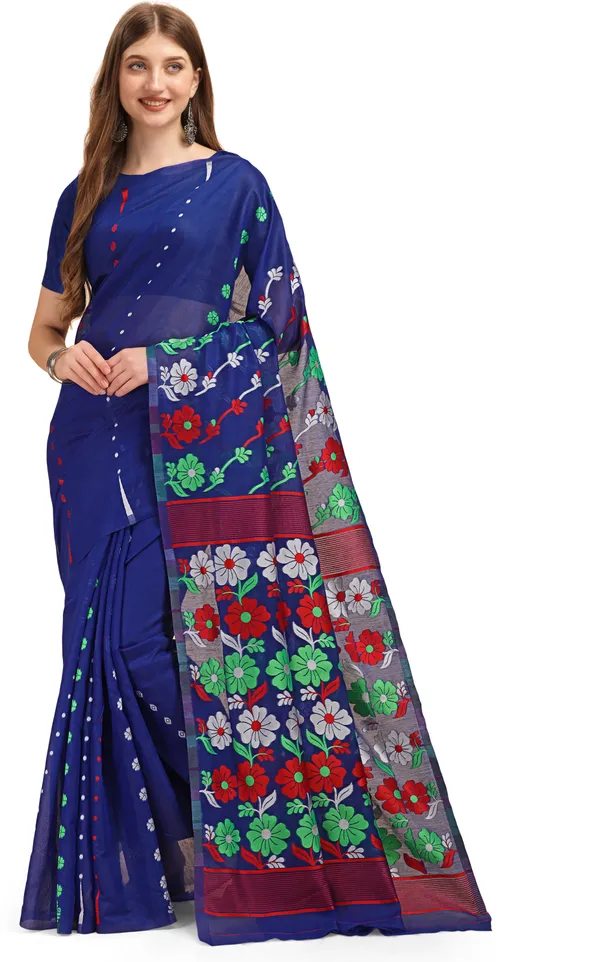Blue Cotton Woven Soft Silk Dhakai Jamdani Saree