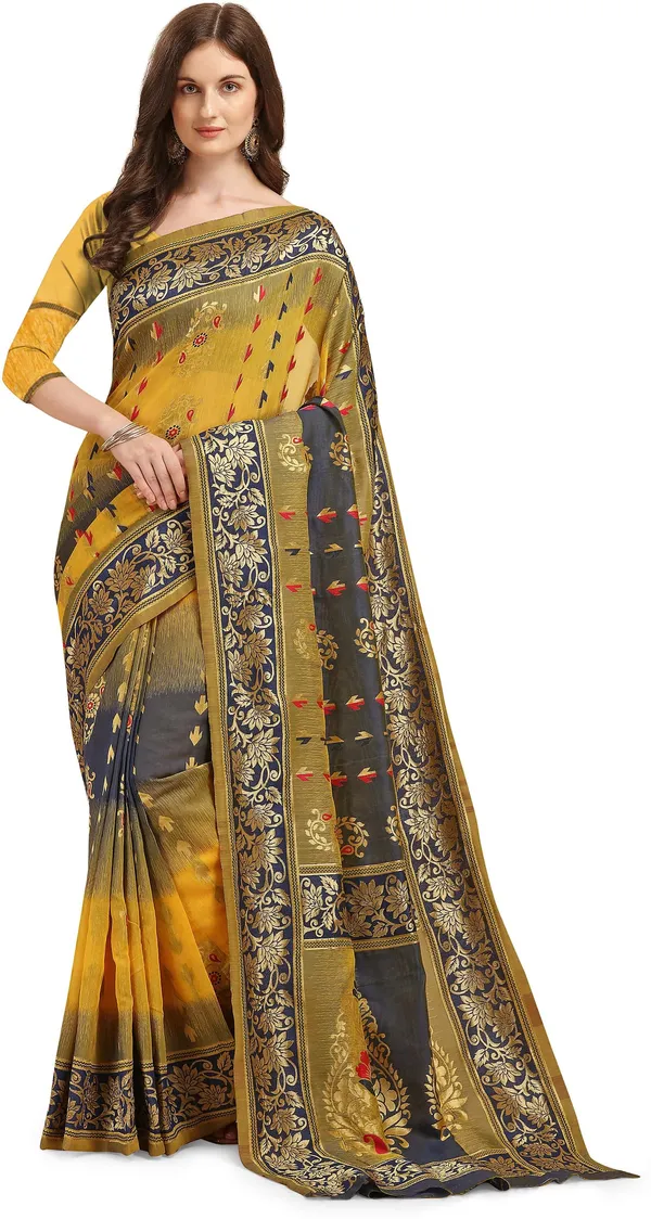 Blue Cotton Woven Soft Silk Dhakai Jamdani Saree