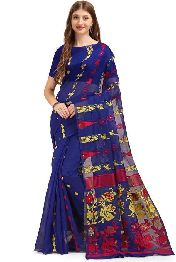 Blue Cotton Woven Soft Silk Dhakai Jamdani Saree