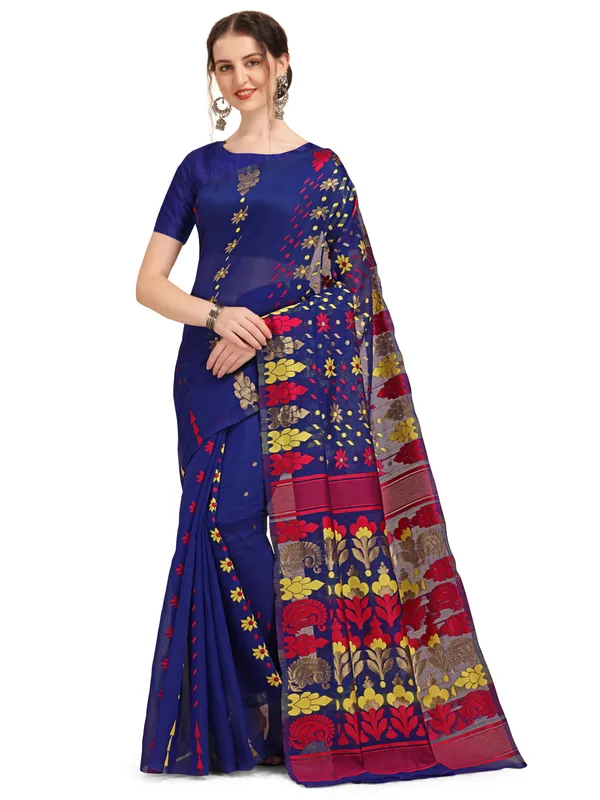 Blue Cotton Woven Soft Silk Dhakai Jamdani Saree