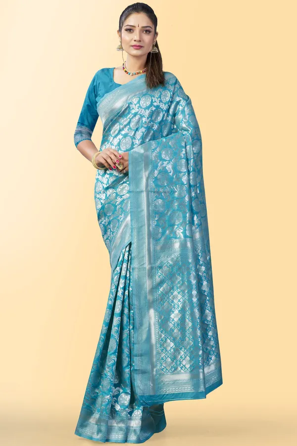 Blue Kanjivaram Soft Cotton Woven Silk Saree