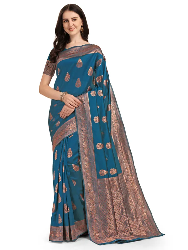 Blue Kanjivaram Soft Cotton Woven Silk Saree