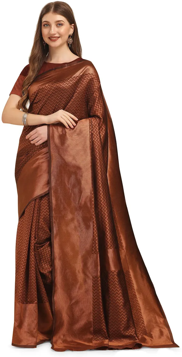 Brown Kanjivaram Soft Cotton Woven Silk Saree