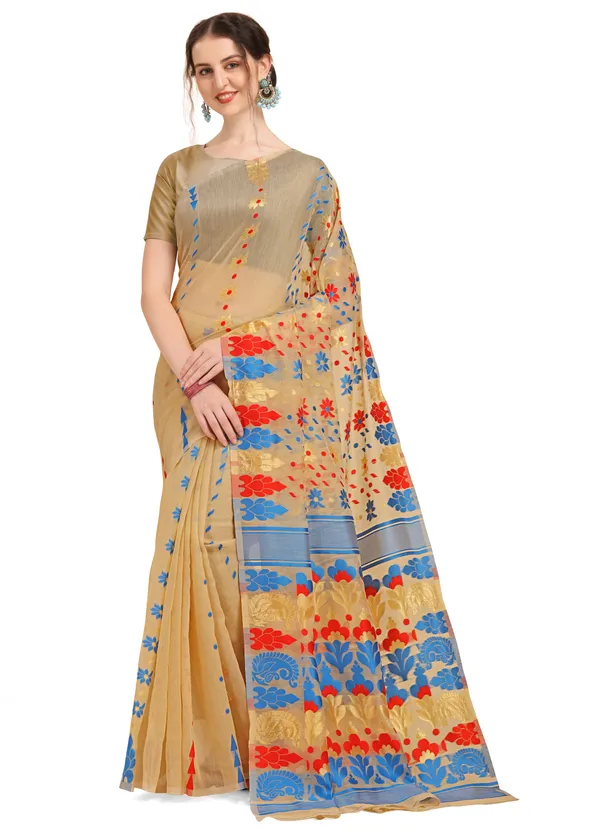 Cream Cotton Woven Soft Silk Dhakai Jamdani Saree