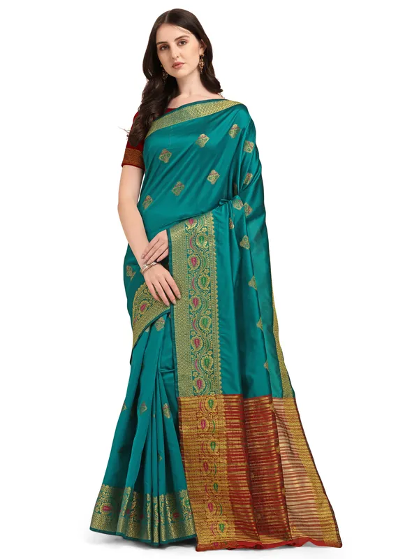 Dark Blue Banarasi Kanjivaram Woven Cotton Silk Saree