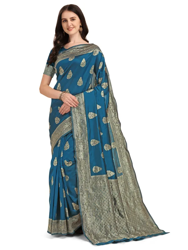 Dark Blue Kanjivaram Soft Cotton Woven Silk Saree