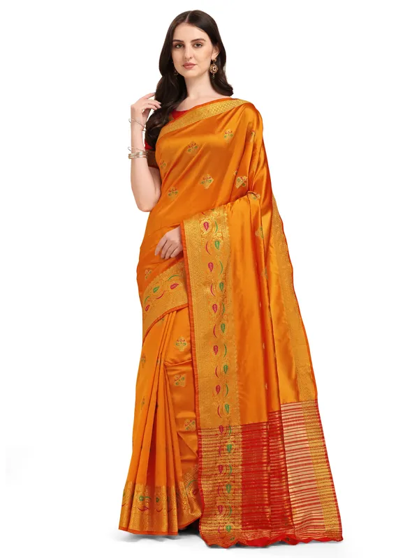 Gold Banarasi Kanjivaram Woven Cotton Silk Saree