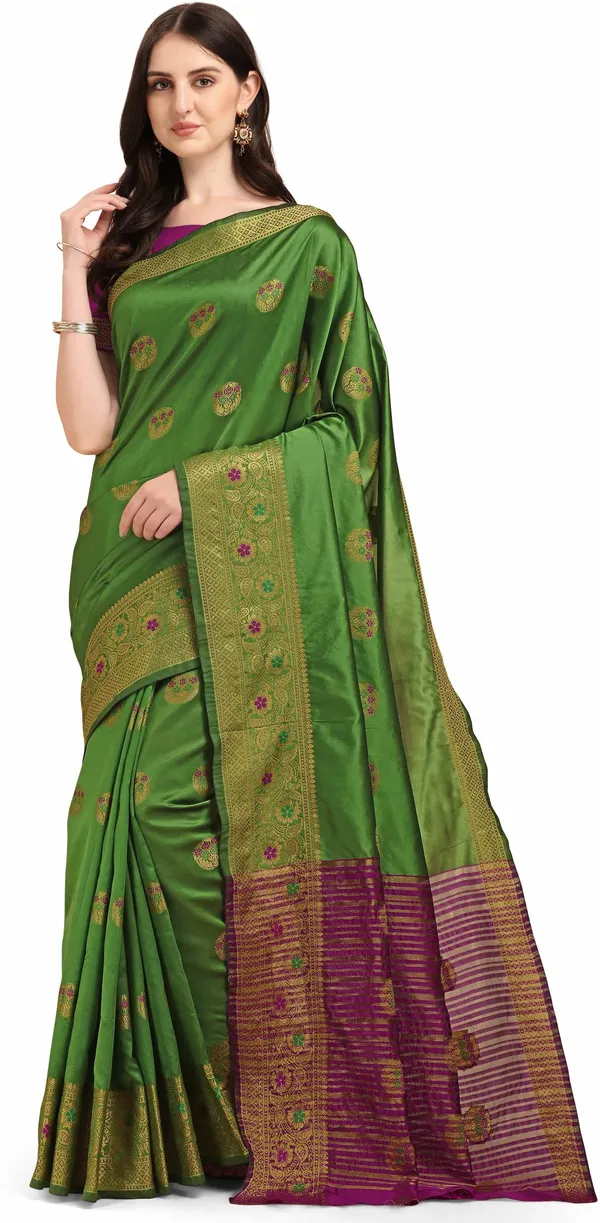 Green Kanjivaram Soft Cotton Pure Silk Banarasi Jacquard Saree