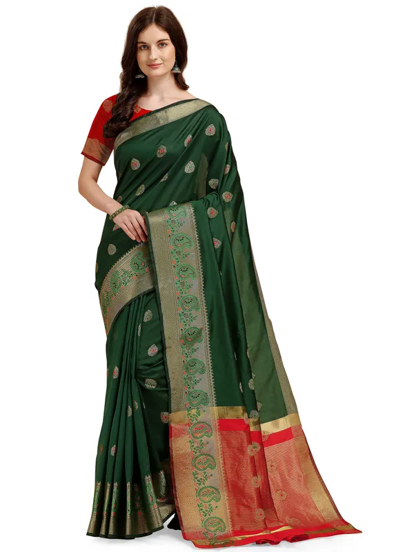 Green Banarasi Kanjivaram Woven Cotton Silk Saree