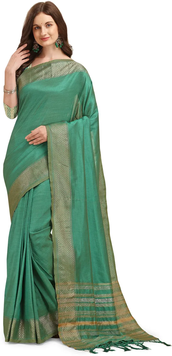 Green Banarasi Kanjivaram Woven Cotton Silk Saree