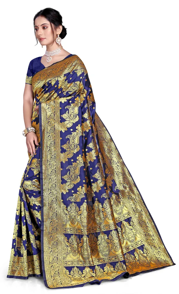 Green Banarasi Kanjivaram Woven Cotton Silk Saree