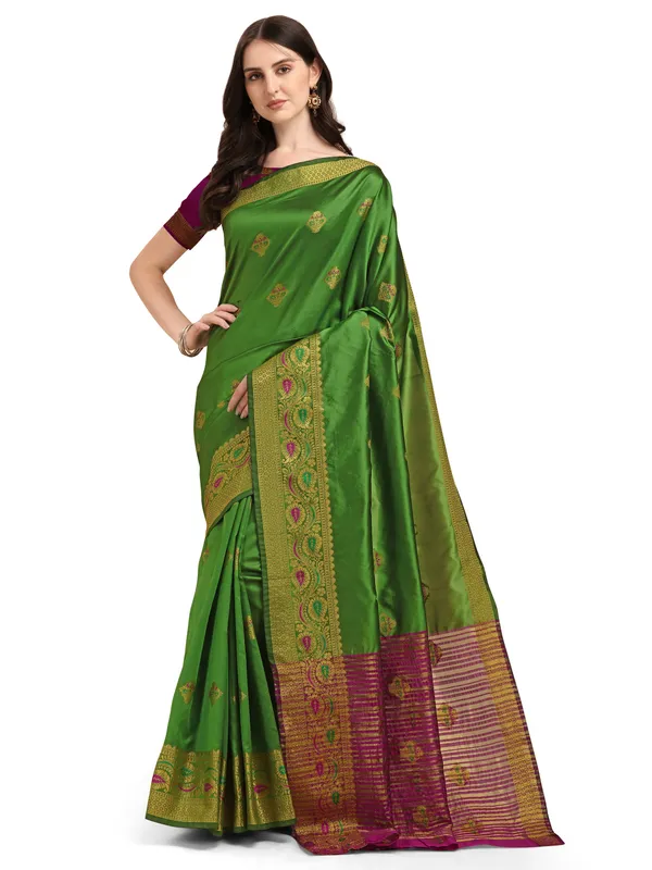 Green Banarasi Kanjivaram Woven Cotton Silk Saree