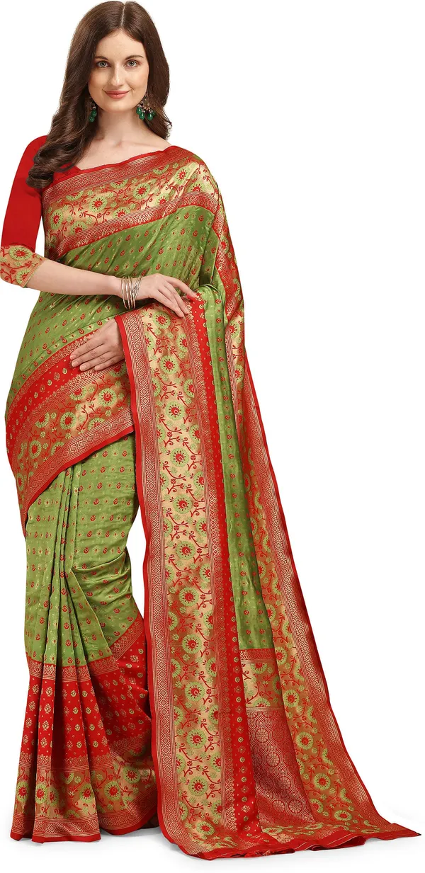 Green Banarasi Kanjivaram Woven Cotton Silk Saree