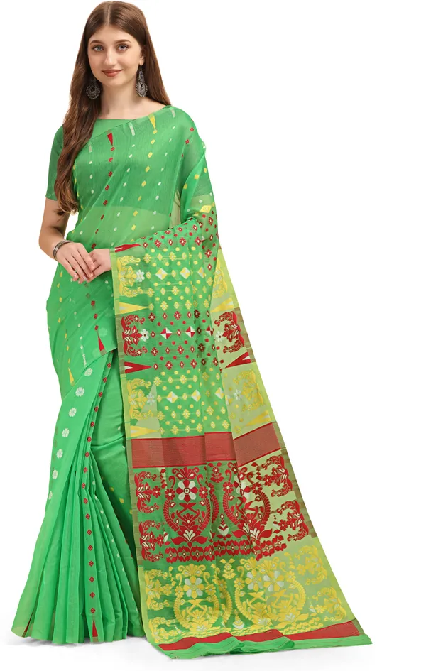 Green Kanjivaram Soft Cotton Woven Silk Saree