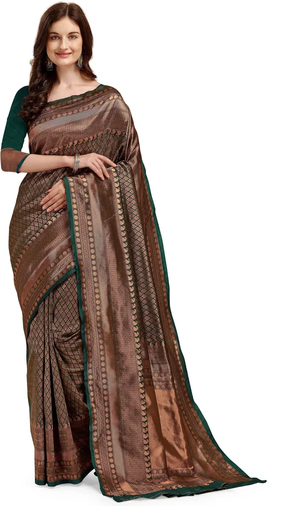 Green Kanjivaram Soft Cotton Woven Silk Saree