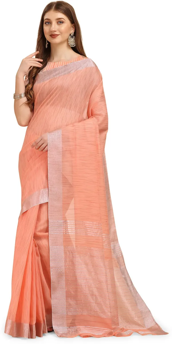 Green Woven Cotton Linen Saree With Jari Border