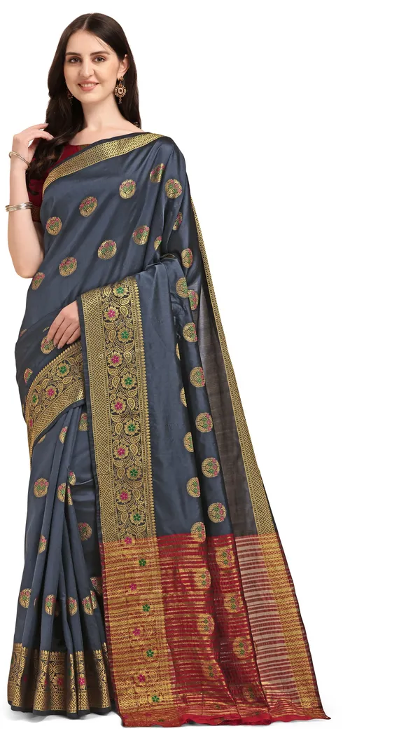 Grey Kanjivaram Soft Cotton Pure Silk Banarasi Jacquard Saree