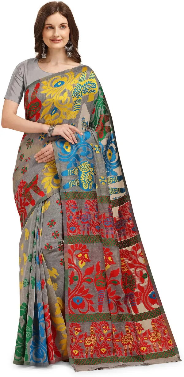 Grey Cotton Woven Soft Silk Dhakai Jamdani Saree