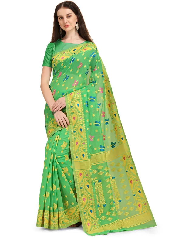 Grey Cotton Woven Soft Silk Dhakai Jamdani Saree