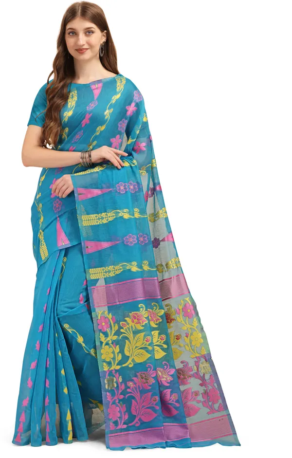 Light Blue Cotton Woven Soft Silk Dhakai Jamdani Saree