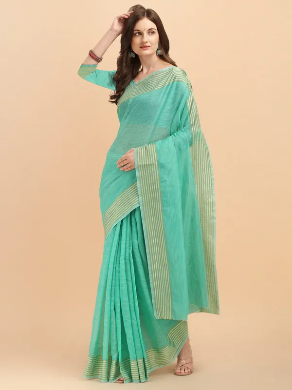 Light Blue Woven Cotton Linen Saree With Jari Border