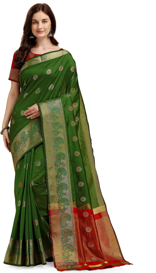Light Green Banarasi Kanjivaram Woven Cotton Silk Saree