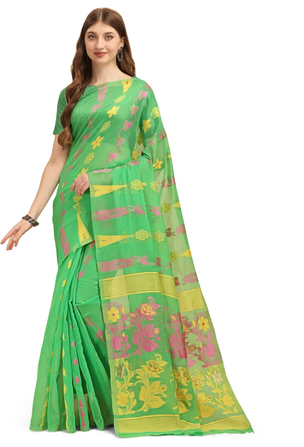 Light Green Cotton Woven Soft Silk Dhakai Jamdani Saree