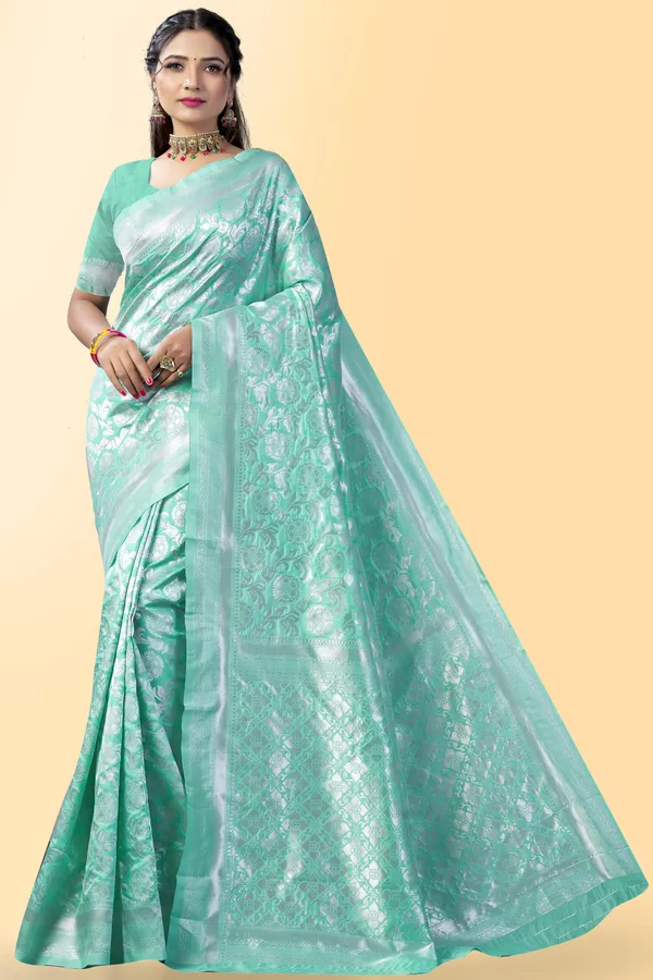 Light Green Kanjivaram Soft Cotton Woven Silk Saree