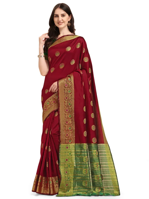 Maroon Kanjivaram Soft Cotton Pure Silk Banarasi Jacquard Saree