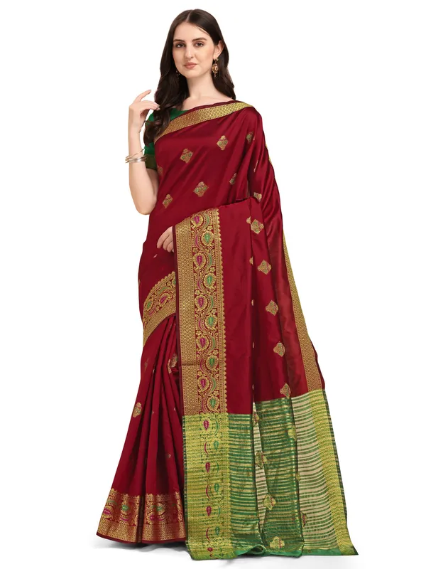 Maroon Banarasi Kanjivaram Woven Cotton Silk Saree