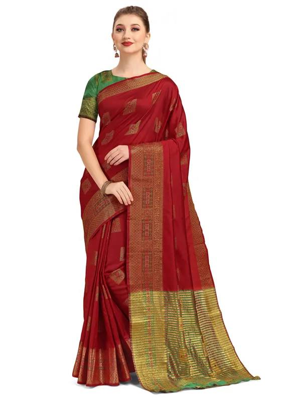 Maroon Cotton Banarasi Silk Saree