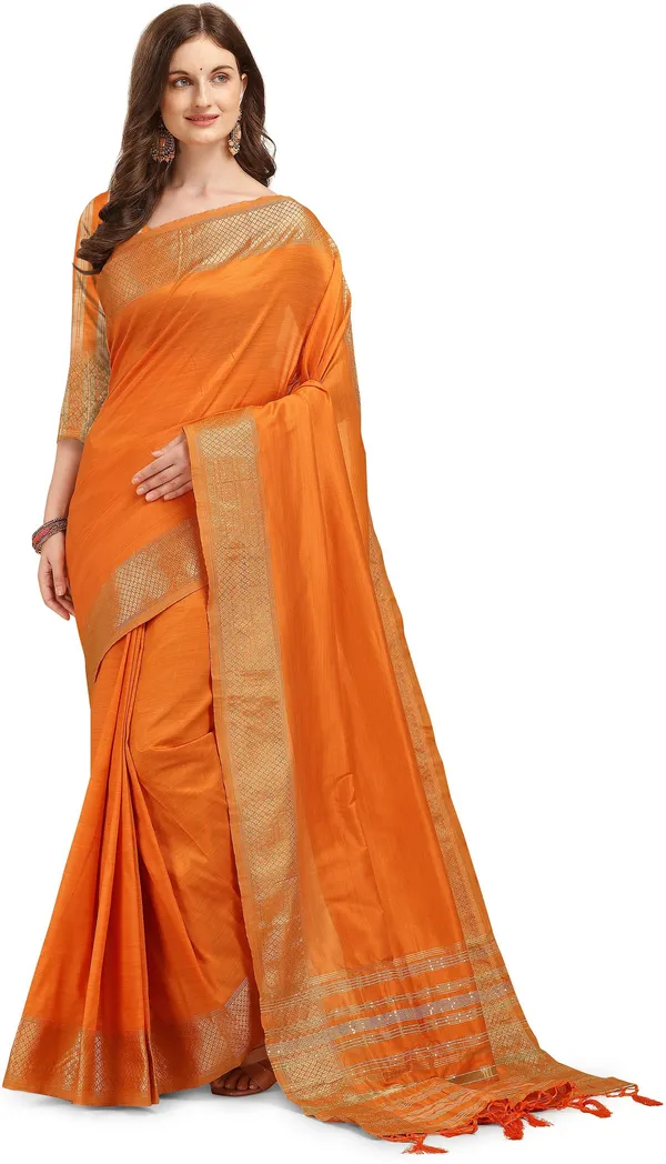 Orange Banarasi Kanjivaram Woven Cotton Silk Saree