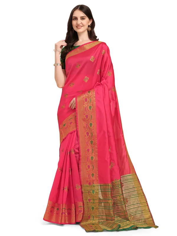 Orange Banarasi Kanjivaram Woven Cotton Silk Saree