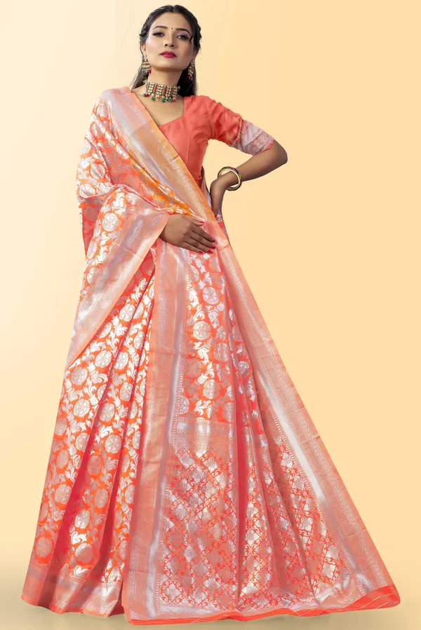 Orange Kanjivaram Soft Cotton Woven Silk Saree