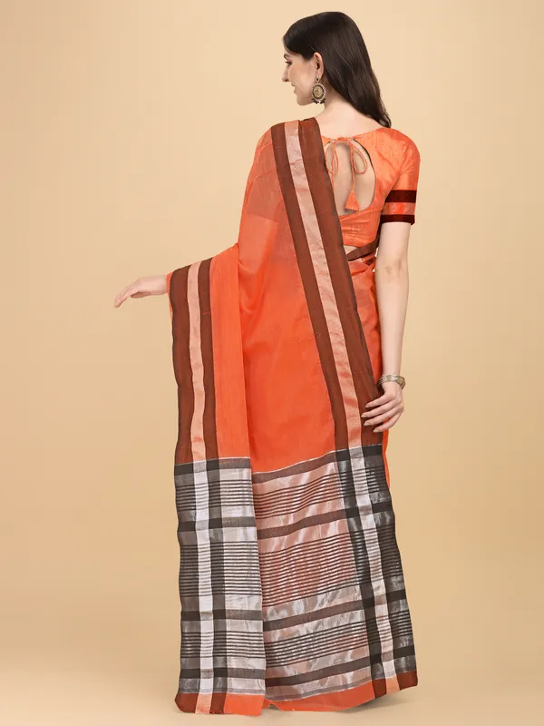 Orange Woven Cotton Linen Saree With Jari Border