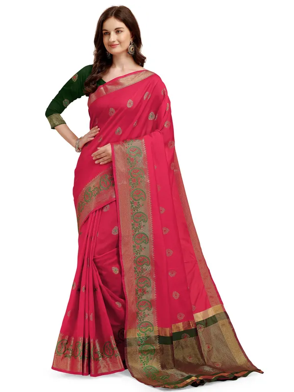 Pink Banarasi Kanjivaram Woven Cotton Silk Saree