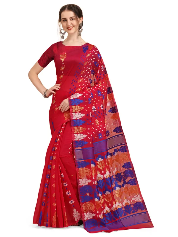 Pink Cotton Woven Soft Silk Dhakai Jamdani Saree