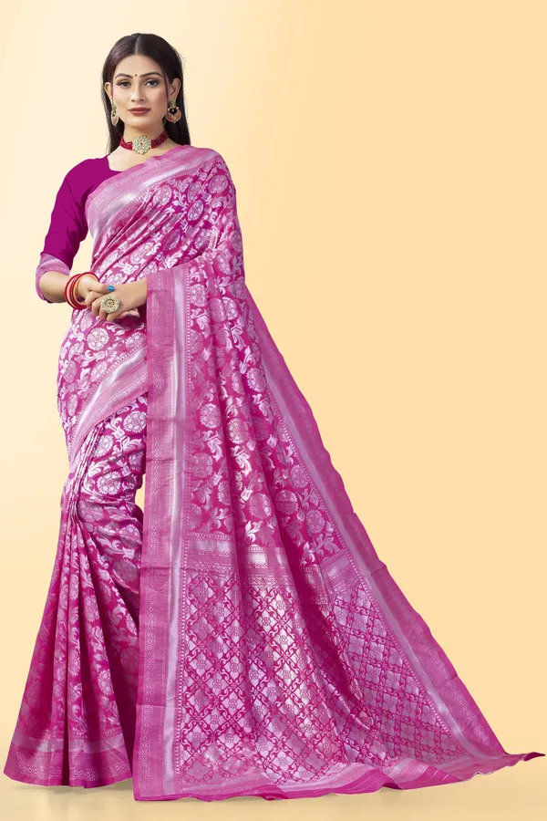 Pink Kanjivaram Soft Cotton Woven Silk Saree
