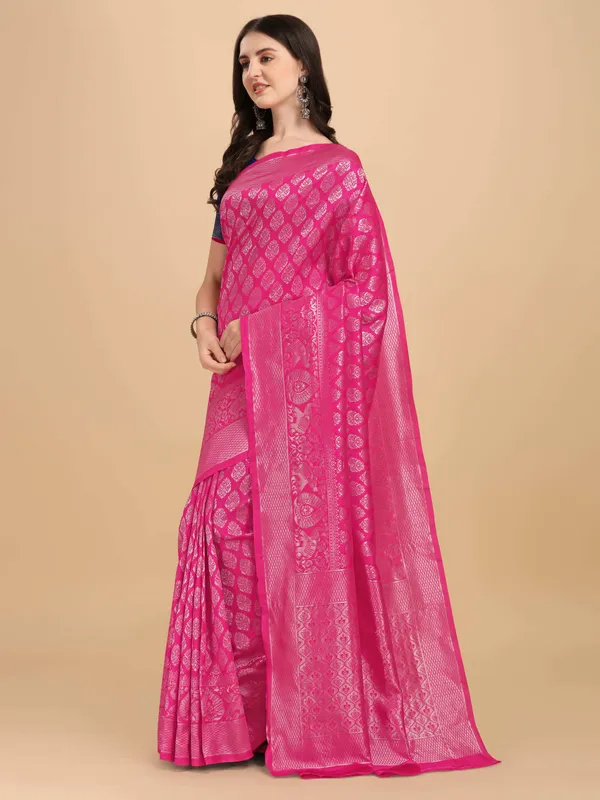 Pink Kanjivaram Soft Cotton Woven Silk Saree