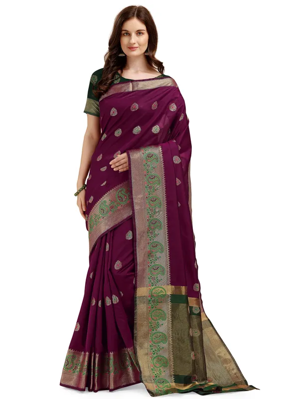 Purple Banarasi Kanjivaram Woven Cotton Silk Saree