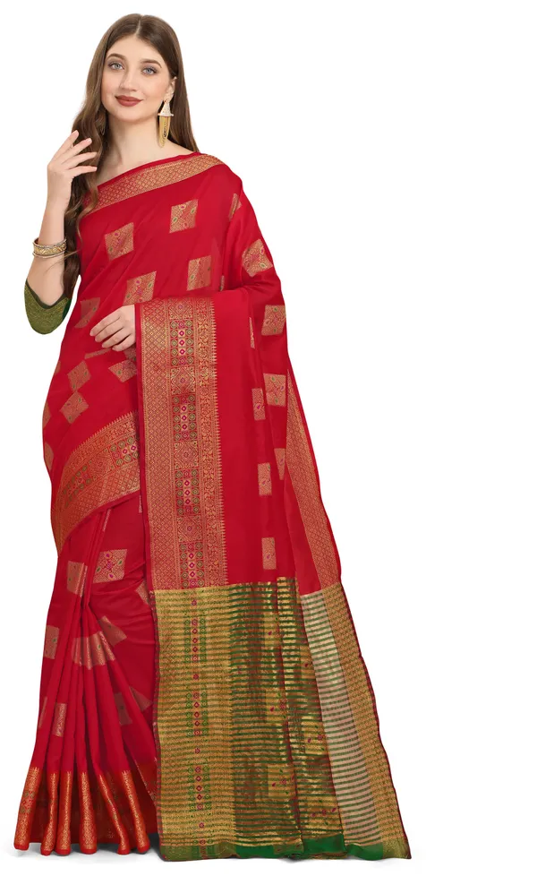 Red Cotton Banarasi Silk Saree