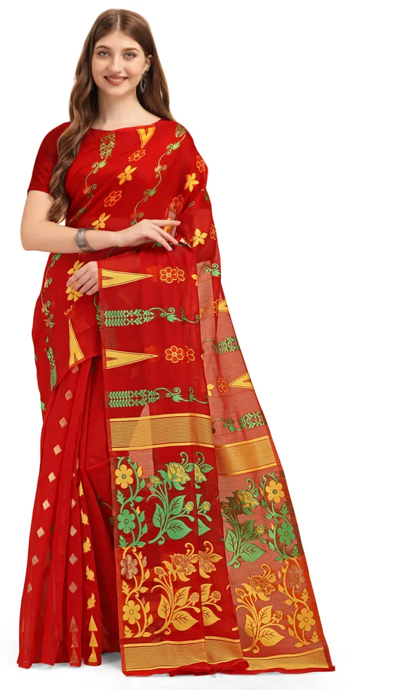 Red Cotton Woven Soft Silk Dhakai Jamdani Saree