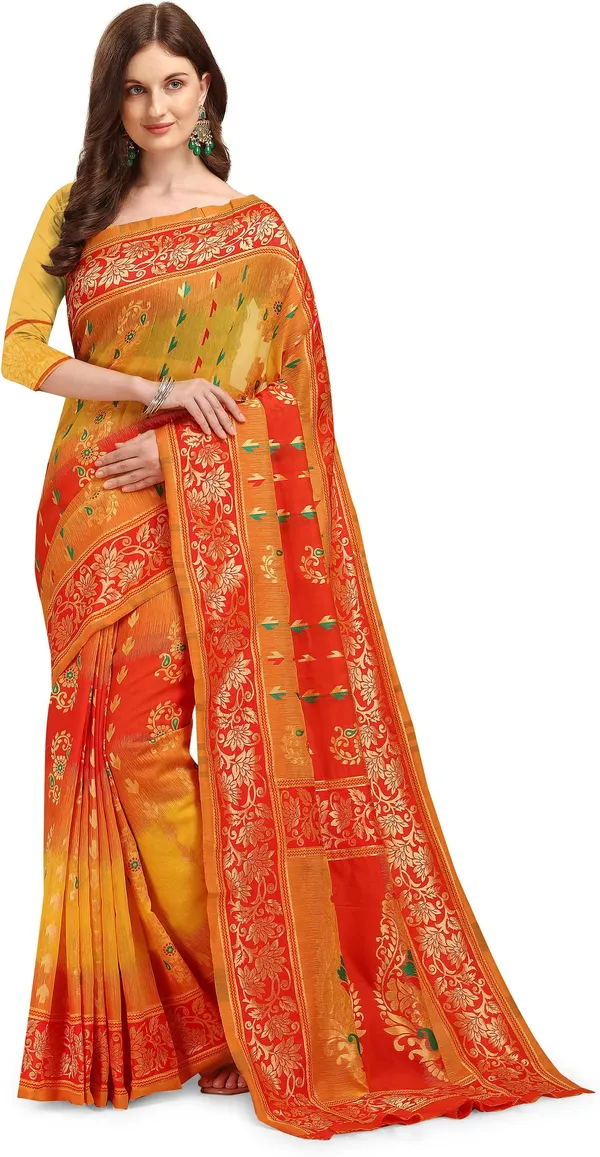 Red Cotton Woven Soft Silk Dhakai Jamdani Saree