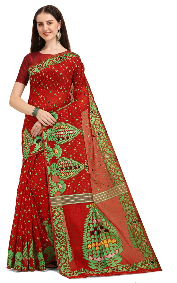 Red Cotton Woven Soft Silk Dhakai Jamdani Saree