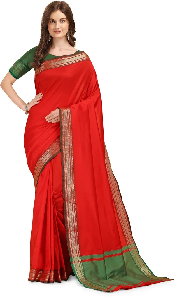 Red Kanjivaram Soft Cotton Woven Silk Saree