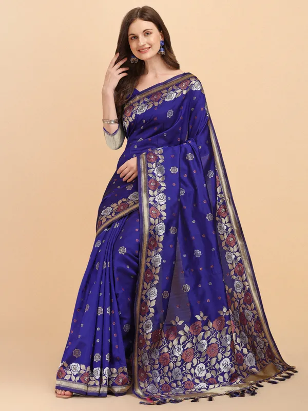 Violet Kanjivaram Soft Cotton Woven Silk Saree