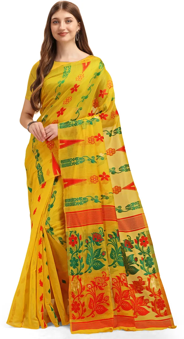 Yellow Cotton Handloom Bengal Tant Saree
